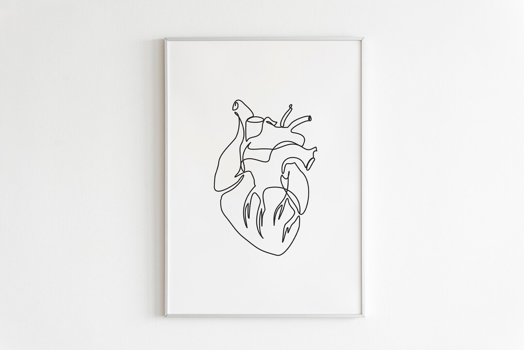 Eine Linie Anatomisches Herz Abstrakt Druckbare Linie Etsy De